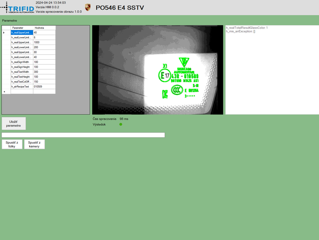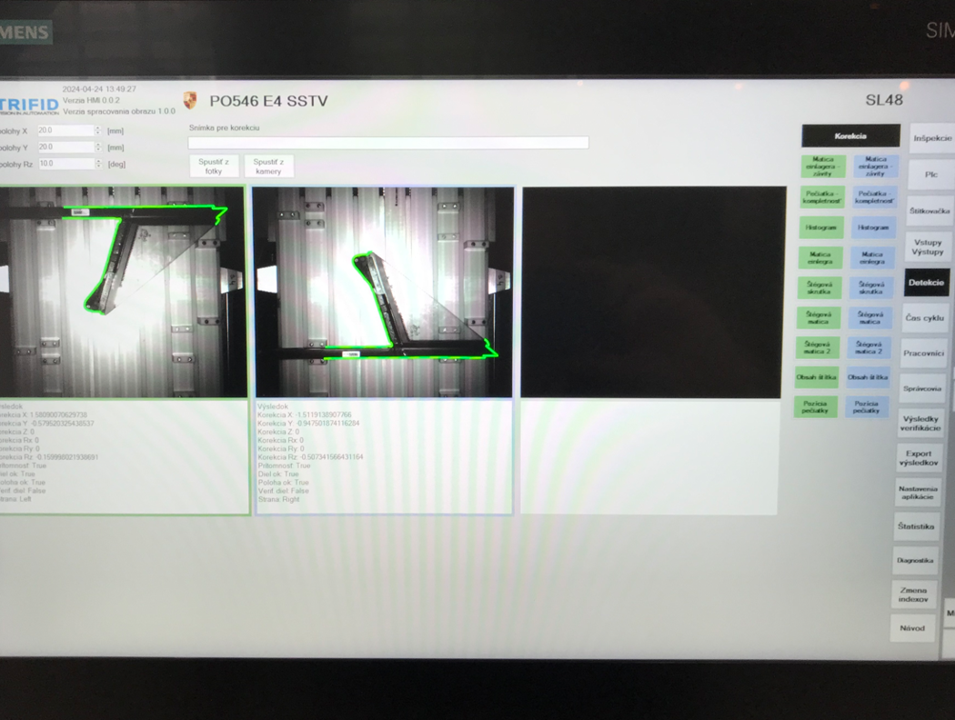 The HMI is designed to allow the user to quickly and easily set up new recipes, browse the result archive, check the signals sent or received from the PLC and view the live image from the camera. At the same time, the system stores photos of each defect and records program logs in the database, which simplifies verification of the application's status.