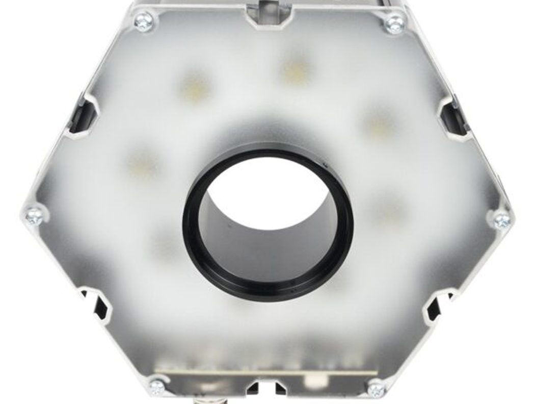 Heat is dissipated through the aluminum housing, allowing the R130 EZ Mount Ring Light Series to be run at a higher current and a greater intensity. Its simple plug-and-play 5-pin M12 connector is easy to use. The 10%-100% intensity control gives users full control over light output will operate with either an NPN or a PNP trigger signal inputs and runs on an industry-standard 24VDC. A standard 42 mm inner hole diameter allows for use with nearly all camera systems with available step-up and step-down conversion kit adapters.