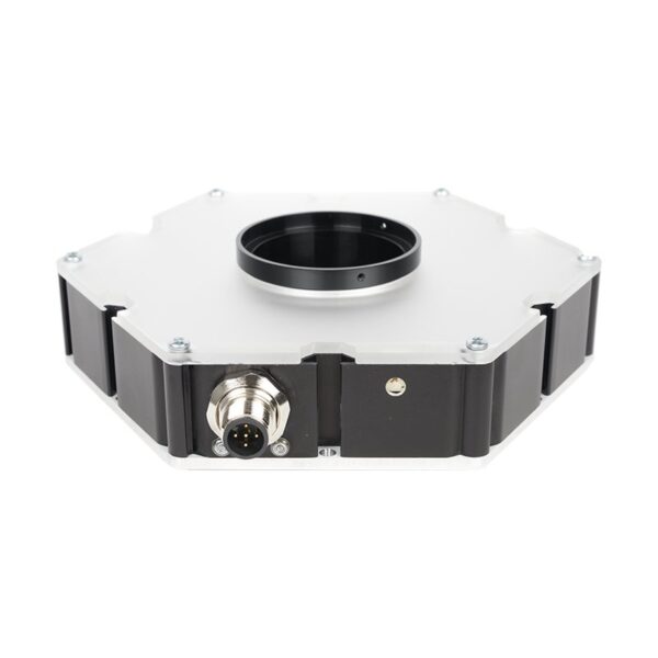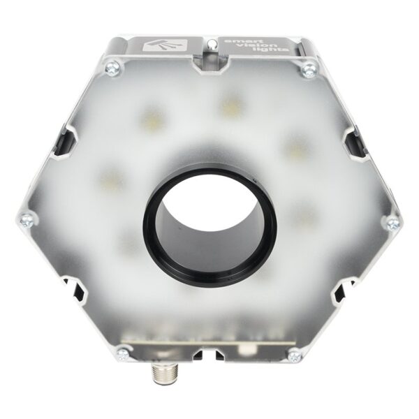 Heat is dissipated through the aluminum housing, allowing the R130 EZ Mount Ring Light Series to be run at a higher current and a greater intensity. Its simple plug-and-play 5-pin M12 connector is easy to use. The 10%-100% intensity control gives users full control over light output will operate with either an NPN or a PNP trigger signal inputs and runs on an industry-standard 24VDC. A standard 42 mm inner hole diameter allows for use with nearly all camera systems with available step-up and step-down conversion kit adapters.